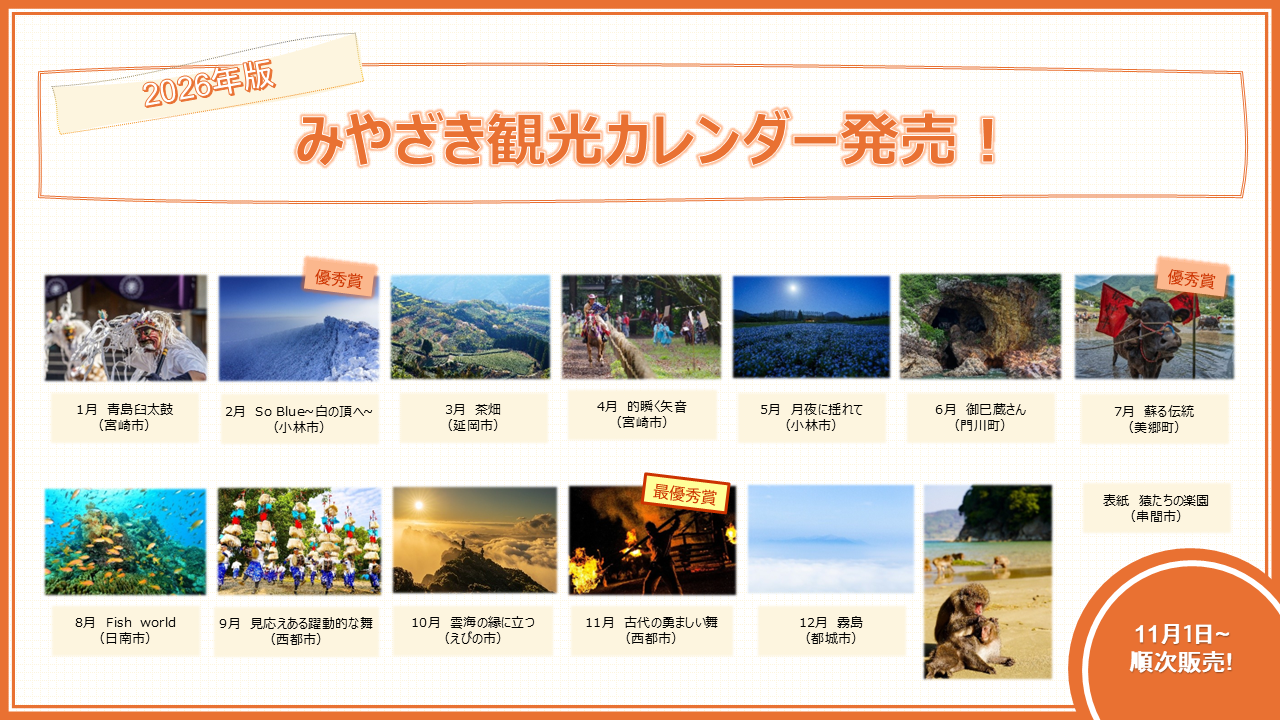 2026年版みやざき観光カレンダーを販売しています!