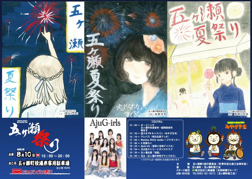 | 電話番号 | 0982-82-0072(五ヶ瀬祭り実行委員会(五ヶ瀬町商工会)) |