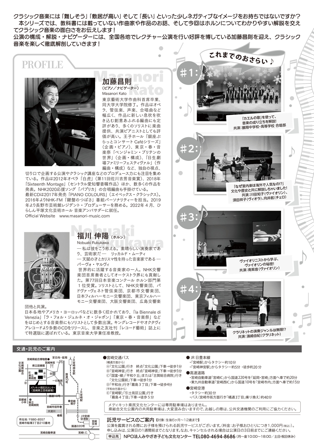 | お問い合わせ先 | 0985-28-7766(メディキット県民文化センターチケットセンター) ※午前10:00~午後6:00 |